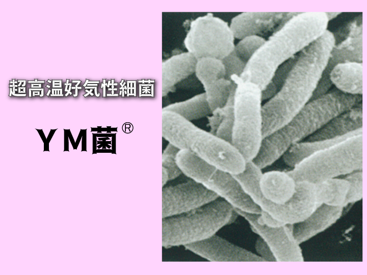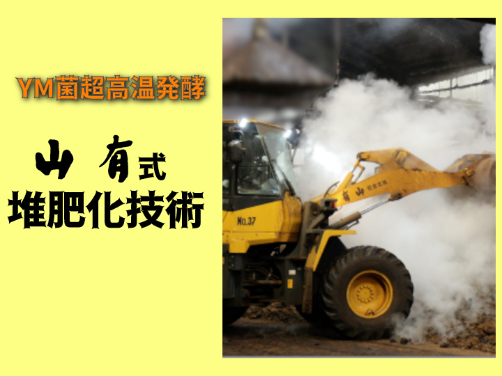 YM菌は、株式会社山有の山村正一が発見・開発した好気菌。超高温発酵により腐敗性有機物を分解し、超高温の分解熱で雑草種子や病原菌などを死滅させると共に水分を蒸発させ、良質な肥料を生産します。